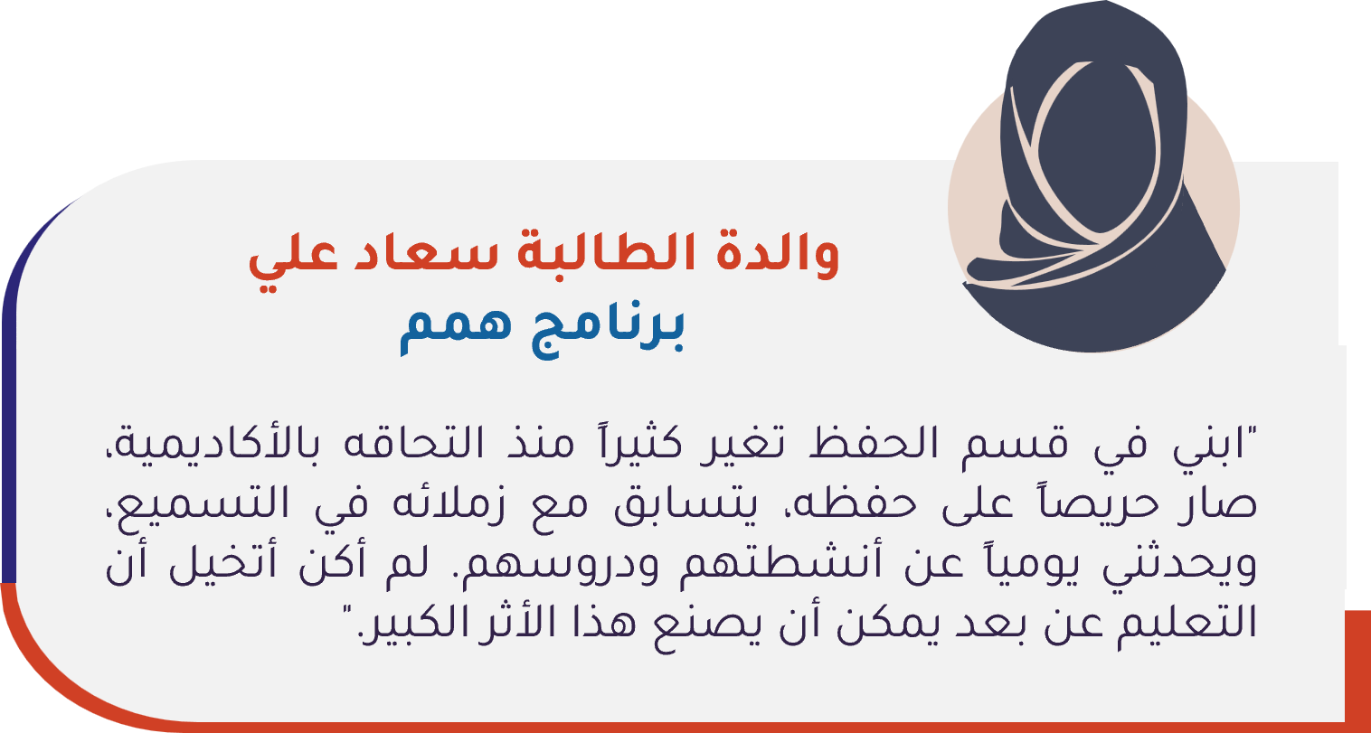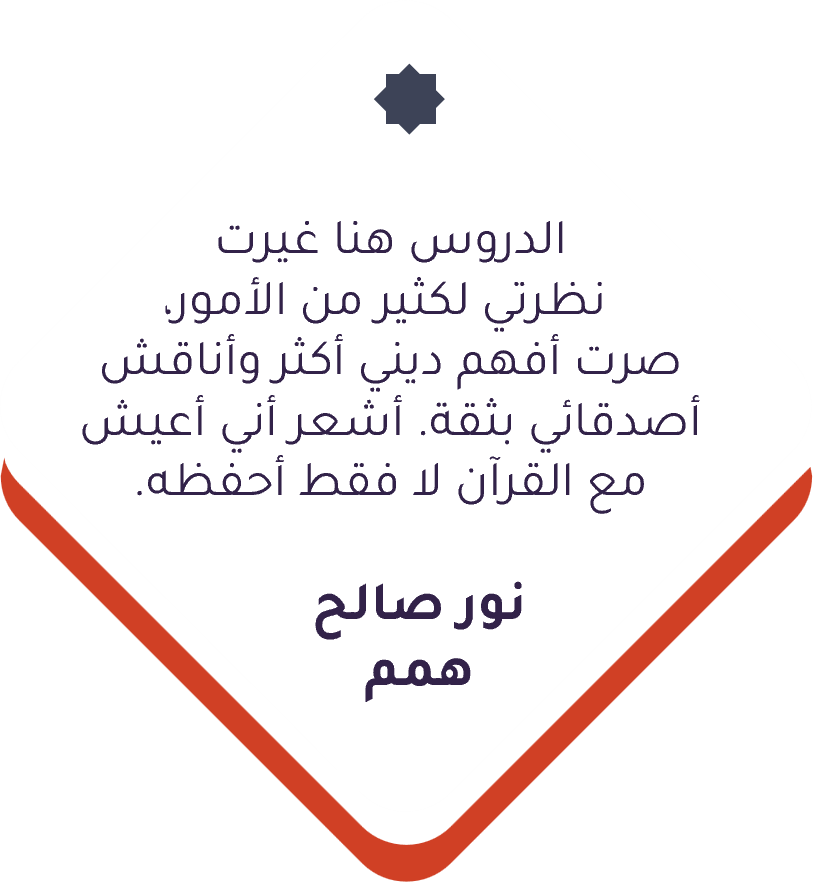 4. يدرس الطالب 3 حصص أسبوعيا، مدة كل حصة ساعة تقريبا، بالإضافة لحصة تسميع الورد القرآني.